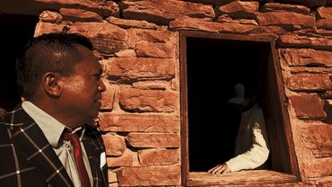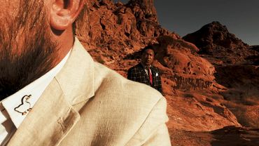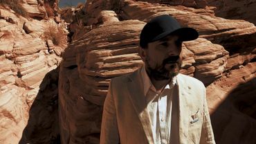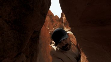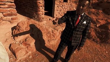 Actor Jomri D. hikes in a plaid suit pondering his new career at Valley of Fire State Park, while filming the mystery-crime-drama feature RENT-A-MAN.